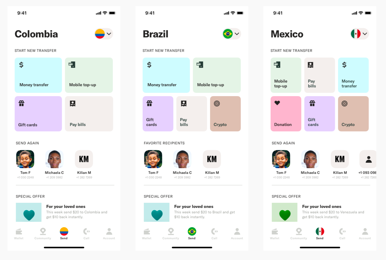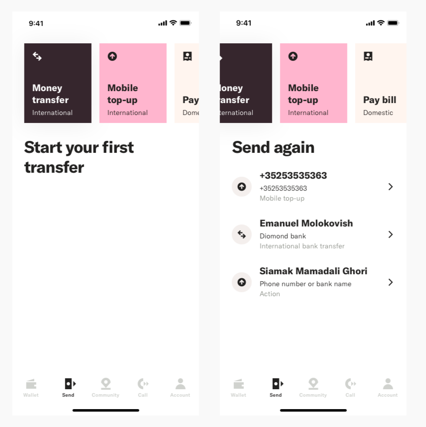 Product decided to Redesign the Send Tab screen